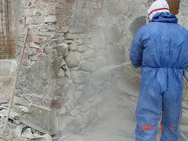 überarbeiten einer Mauersteinfassade mit Softsandstrahlverfahren |